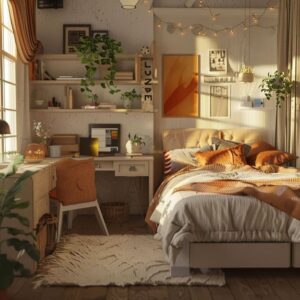 Using drawers, shelves, and organizers will help keep items in order and reduce clutter. Accessories like drawer organizers, shelf dividers, and under-bed storage containers allow you to store belongings in a simple, organized way. This makes it easier to find what you need and ensures the room remains neat and orderly.
